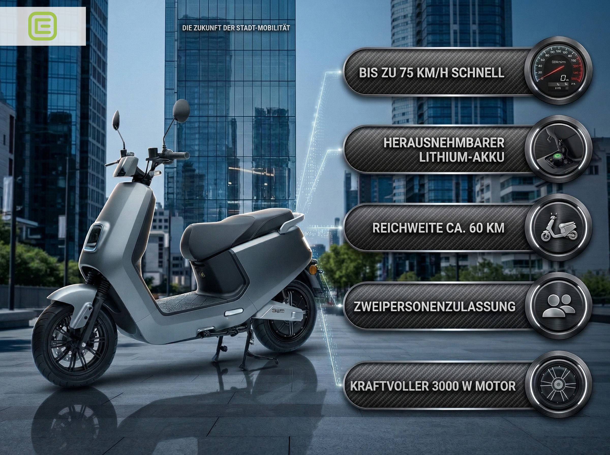 ➡ Jetzt mehr Vorteile entdecken: Elektro Zweiradroller LX 45 km/h Lithium mattgrau